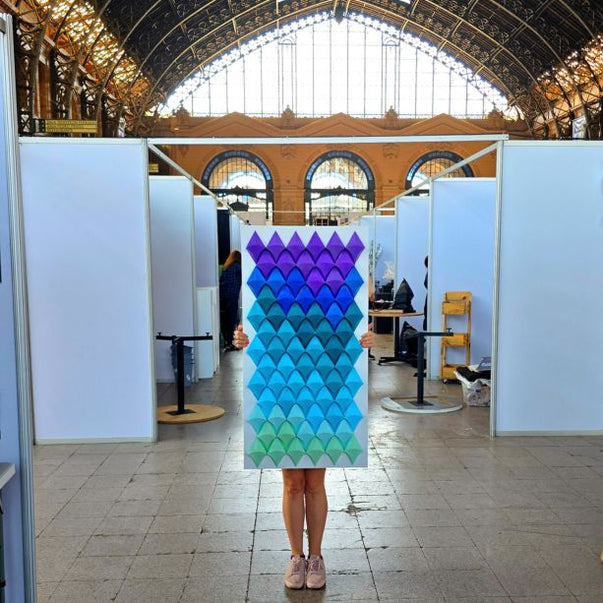 Cuadro volumétrico de papel: 72 piezas de papel, cortadas, plegadas, pegadas y barnizadas.