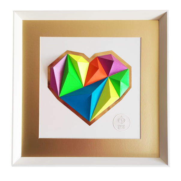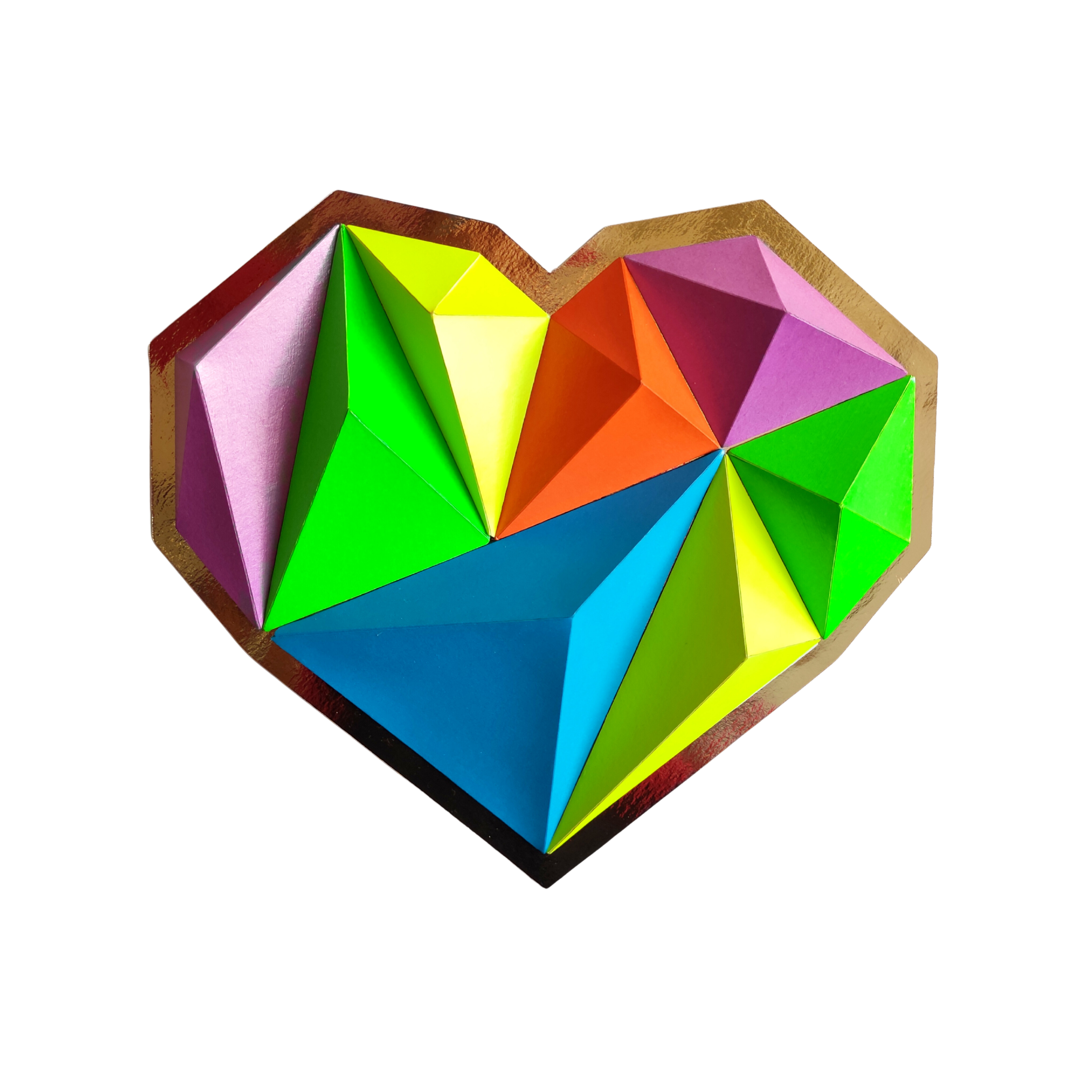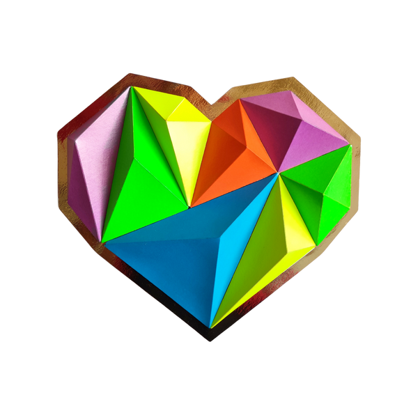 8 piezas de papel, cortadas, plegadas, pegadas y barnizadas.