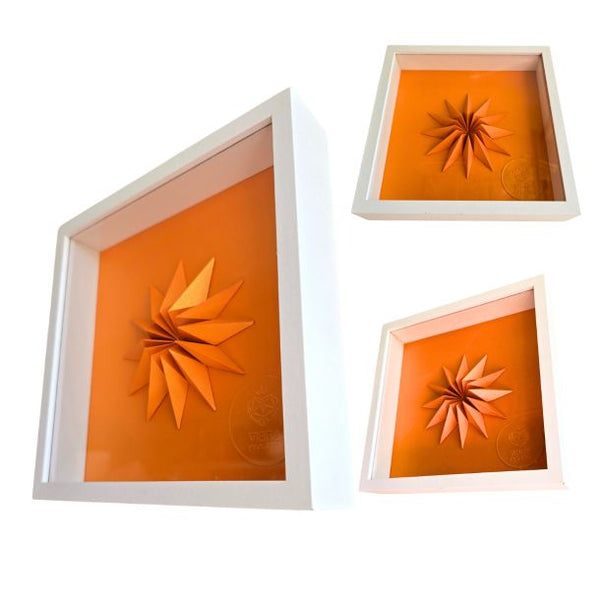 Cuadro volumétrico de papel: 12 piezas de papel perlado, cortadas, plegadas y pegadas.