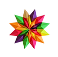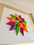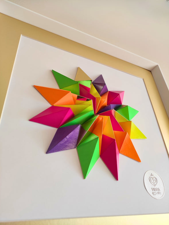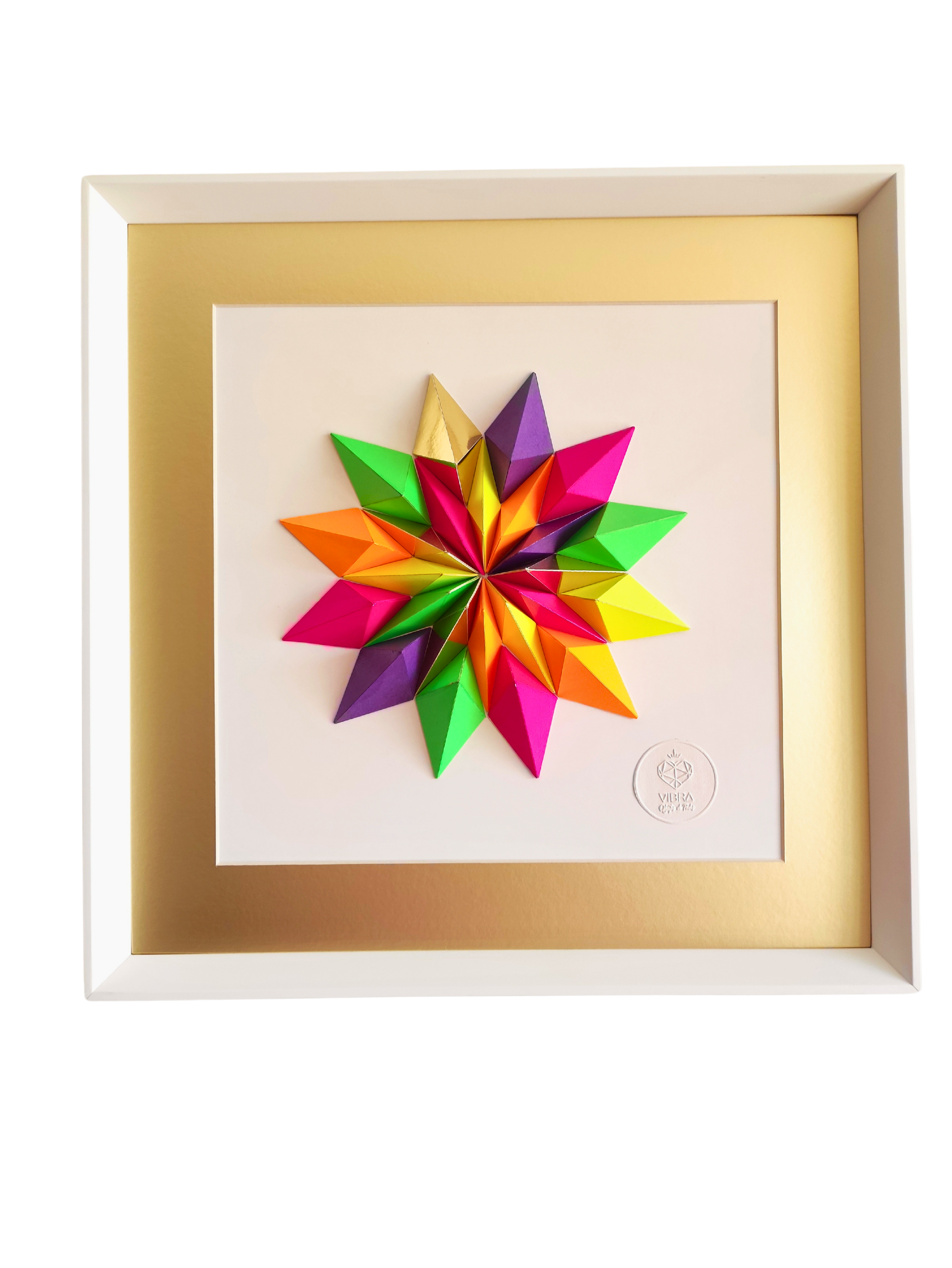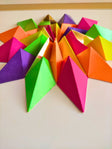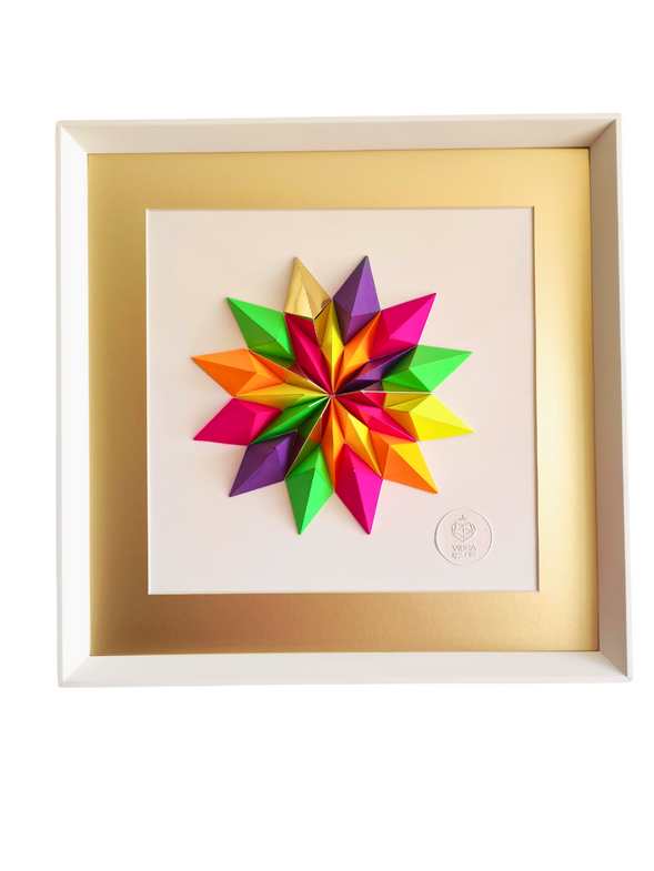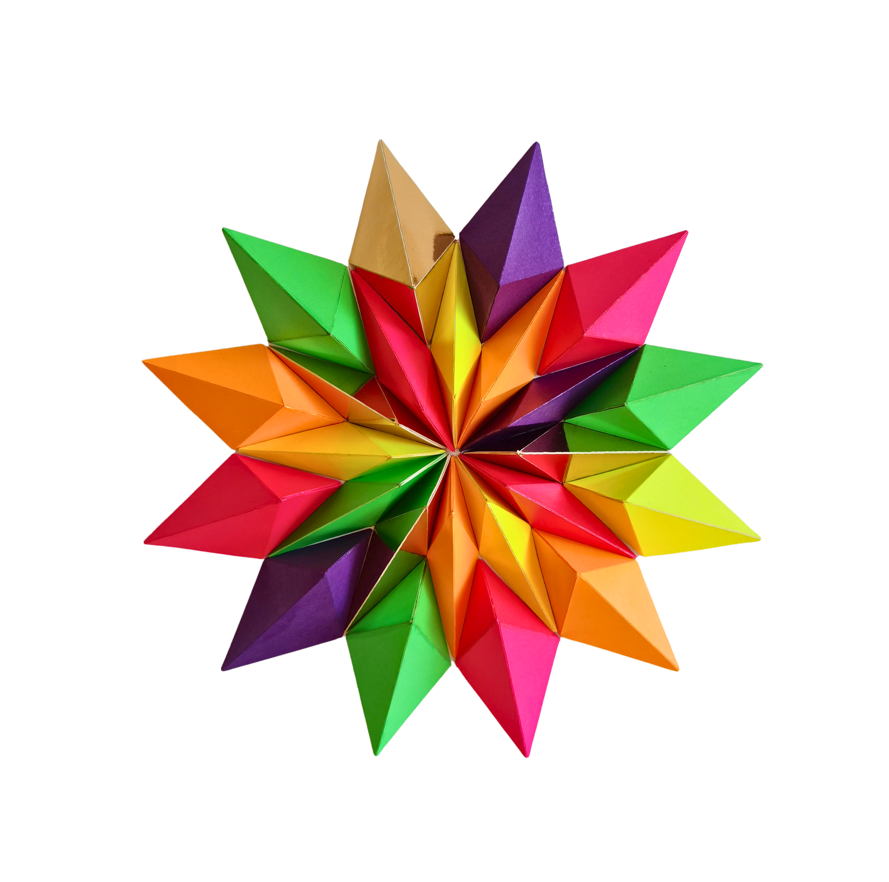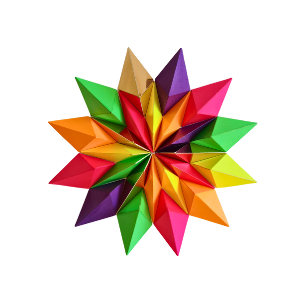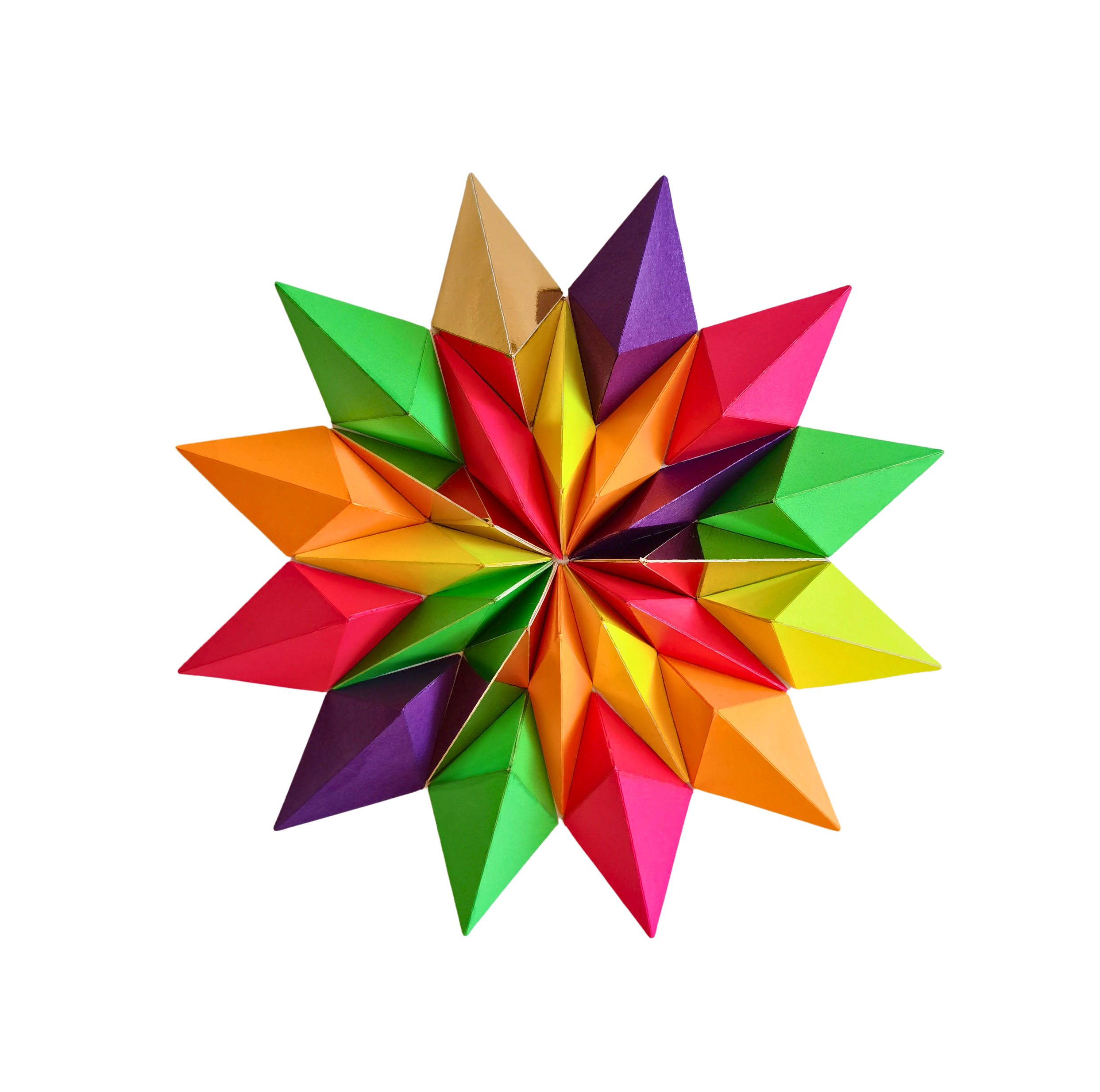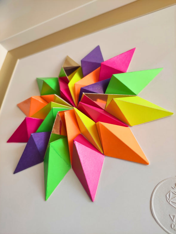 24 piezas de papel, cortadas, plegadas, pegadas y barnizadas.